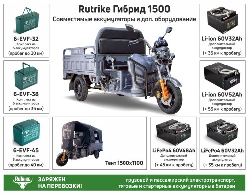 Элемент каталога | Грузовой Электротрицикл Rutrike Гибрид 1500 60V1000W [3085] |